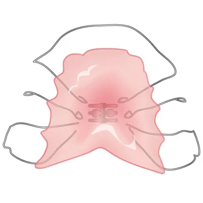動的治療を終えてから、かみ合わせが安定するまで保定装置を使い、移動した歯をしっかり安定させます。