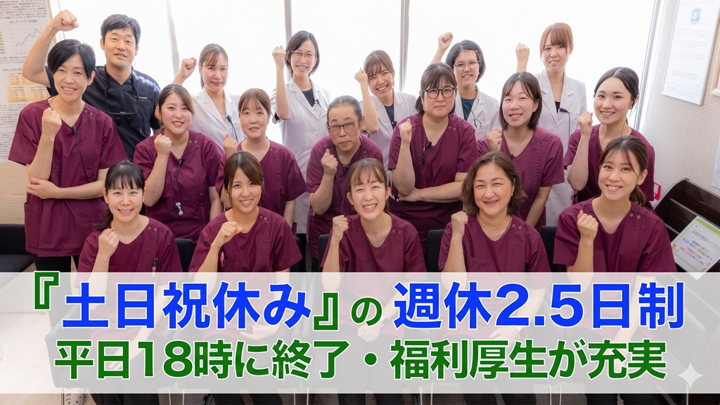 他院は19時や20時診療終了が多いですが、プライベートも充実してもらいたいので当院は診療時間を短くしています!