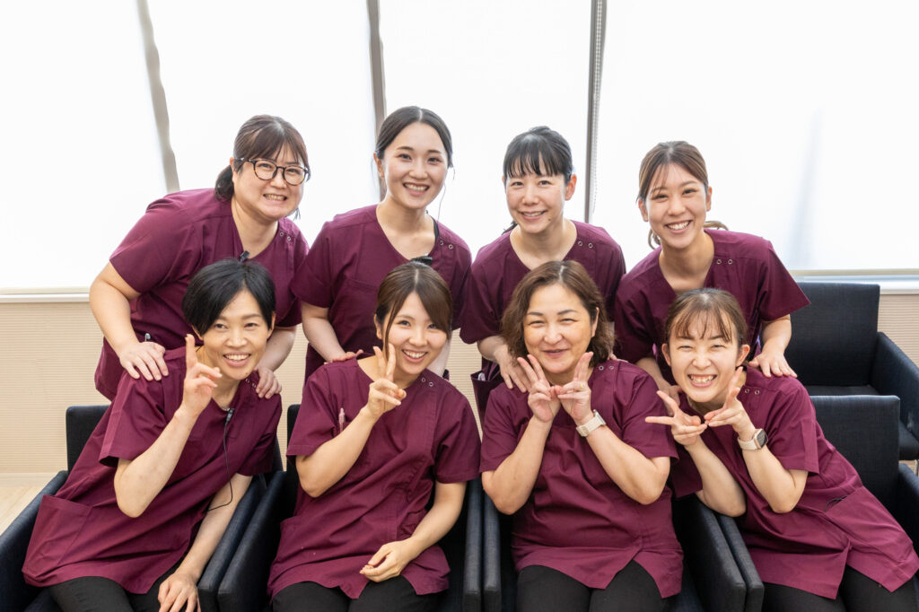 | スタッフ内訳 | 歯科医師 :9名(常勤4名 非常勤5名) 歯科衛生士:9名(常勤8名、非常勤1名) 歯科助手 :2名(常勤2名) 受付 :2名(常勤2名) ※2026年4月現在 |